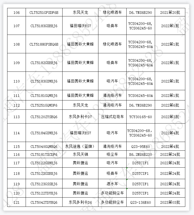 108 CLT5188GPSEQ6B 福田奧鈴大黃蜂 綠化噴灑車 YCS04200-68, YCS06245-60A 2022第1批
