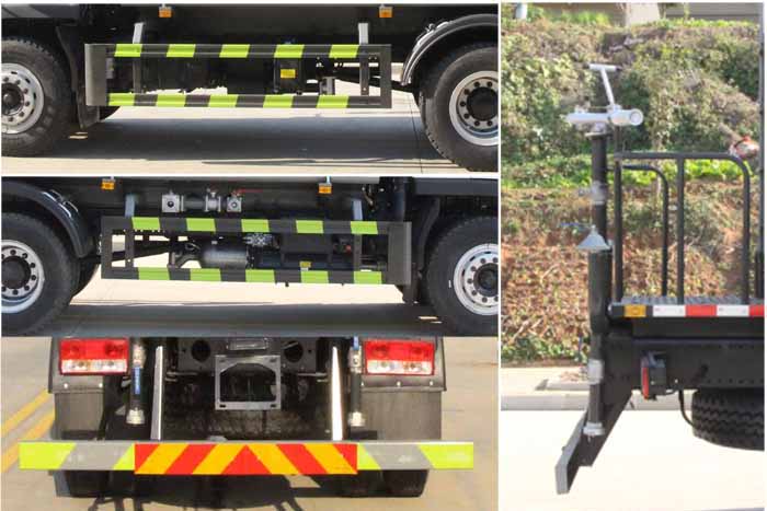 該車主要用于城鄉(xiāng)園林綠化噴灑作業(yè);主要裝置為水罐及噴灑裝置;罐體總?cè)萘?/span>:11.66立方米;罐體有效容積:11.1立方米;罐體外形尺寸(長(zhǎng)×長(zhǎng)軸×短軸)(mm):4200×2300×1450.運(yùn)輸介質(zhì):水,密度1000千克/立方米;ABS型號(hào)為CM4XL-4S/4M,生產(chǎn)廠家為廣州瑞立科密汽車電子股份有限公司.側(cè)、后防護(hù)材料均為:Q235碳鋼,連接方式均為:螺栓連接;后部防護(hù)截面尺寸(mm):120×50,后部防護(hù)離地高度(mm):480.隨底盤選裝限速裝置,限速88km/h.選裝前部電子水炮裝置樣式,選裝前部不帶電子水炮;當(dāng)前部帶電子水炮時(shí),前伸500mm,整車長(zhǎng)度為8250mm,8000mm;當(dāng)前部不帶電子水炮時(shí),前伸為0mm,整車長(zhǎng)度為7750mm,7500mm.僅采用底盤3950mm軸距改裝.隨底盤選裝新款前格柵,新款保險(xiǎn)杠,新造型前霧燈.選裝油箱電瓶安裝位置,選裝車輛前部鴨嘴裝置. |